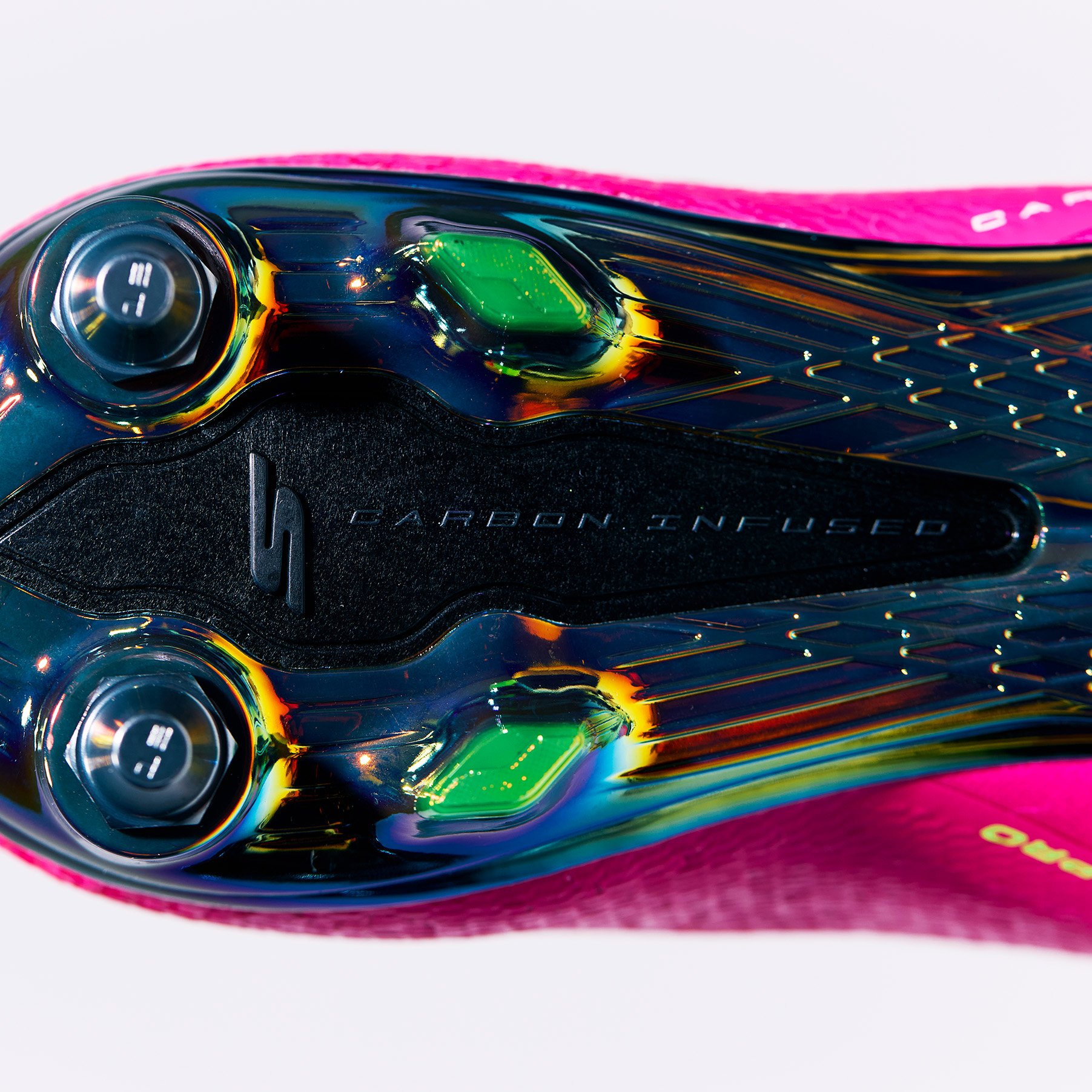 Patent-pending carbon-infused forefoot plate offers an extremely high stiffness-to-weight ratio, which promotes stability and next level energy return.