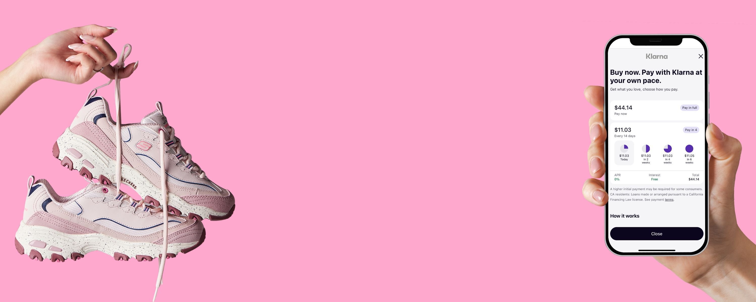Divide a tua compra Skechers em 4 pagamentos* para que possas distribuir o custo ao longo do tempo. Insire o cartão de crédito ou débito de tua preferência para pagamentos automáticos a cada duas semanas. Sem juros ou taxas adicionais se pagas em dia.